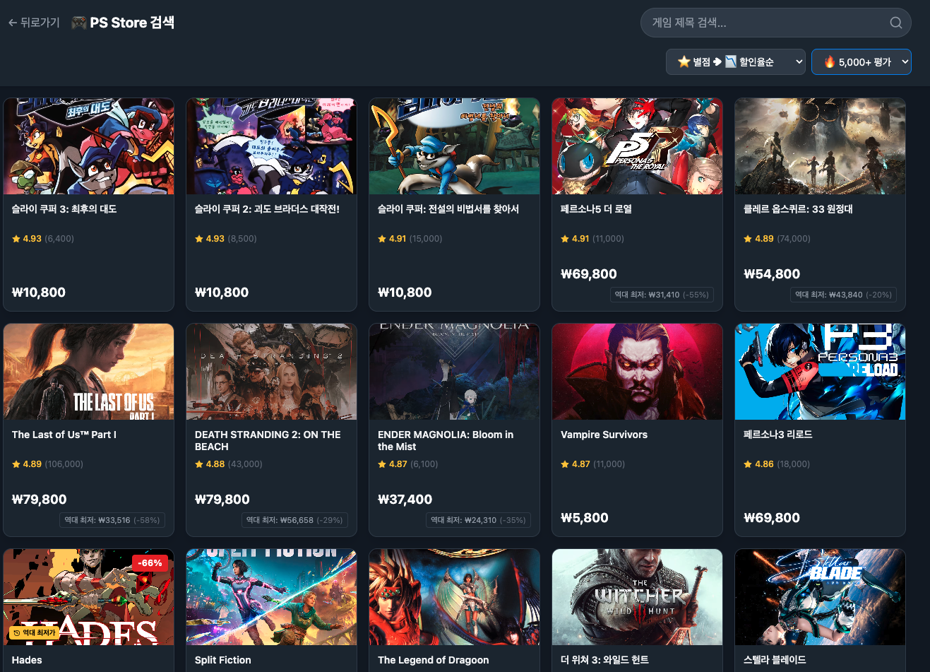 PS 스토어의 답답함 때문에 직접 만든, 나만의 'PlayStation 할인 큐레이션' 사이트 제작기