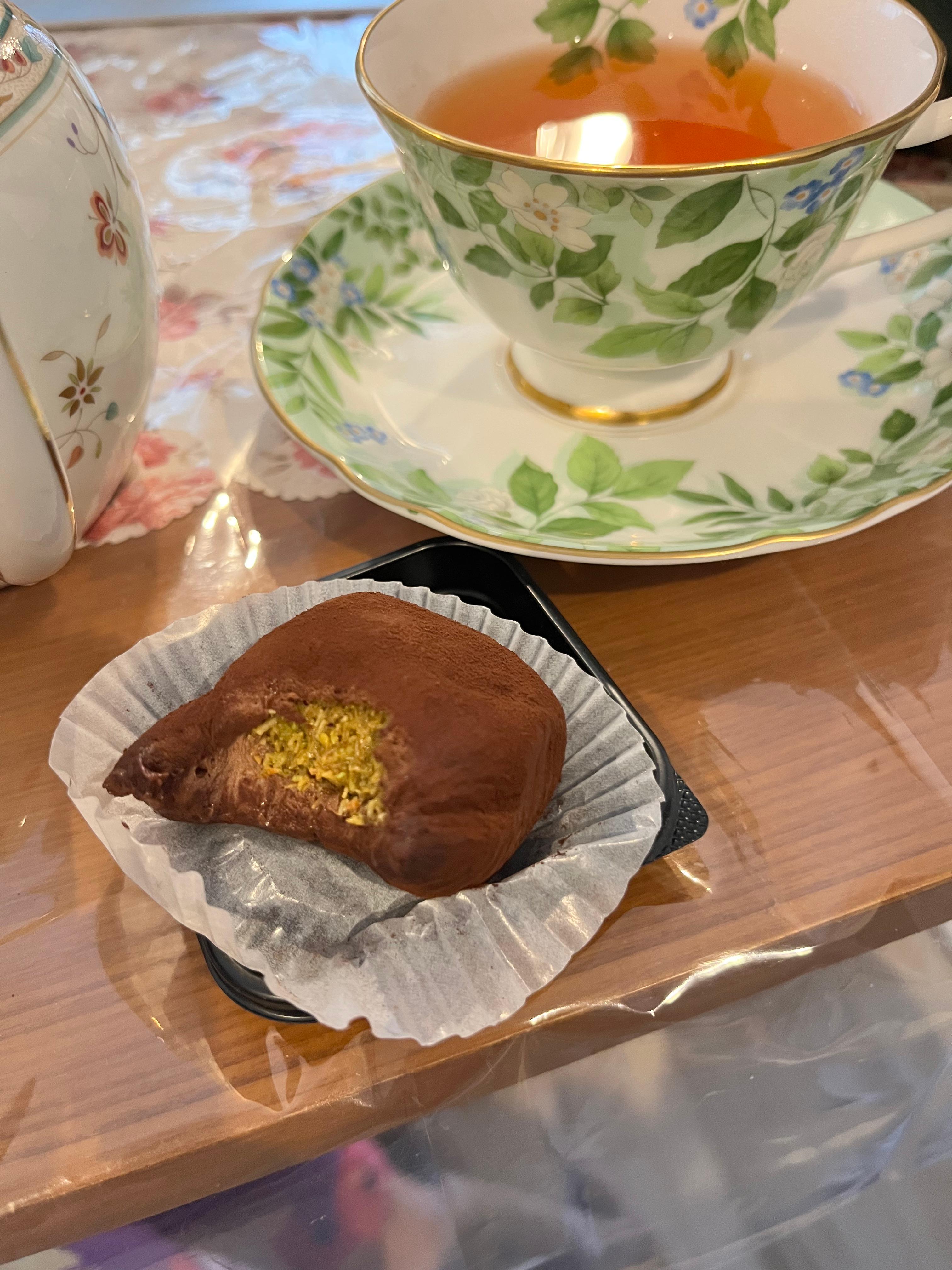 사진 보이시나요? 한 입 베어 물면 안에 있는 초록빛 피스타치오 필링이 얼굴을 내밉니다. 쫀득한 떡 같은 식감과 피스타치오의 풍미가 초콜릿과 어우러져서 정말 환상적이에요. 신오쿠보까지 간 보람이 느껴지는 맛입니다.