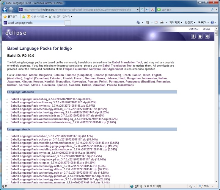 Babel Language Pack Zips 밑에 자신이 사용하고 있는 버전을 클릭합니다. 저는 Indigo를 클릭했습니다.