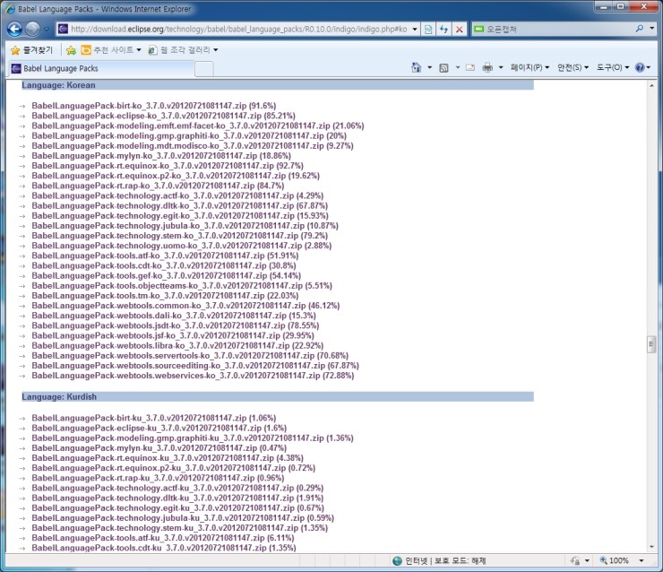 BabelLanguagePack-eclipse-ko_3.7.0.v20120721081147.zip 를 클릭하여 다운 받습니다.