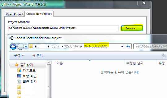6. Browse...를 눌러서 방금 생성하였던 빈 폴더를 선택해준다.