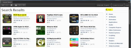 2. 우측 상단에 ngui를 검색하여 첫번째로 뜨는 "NGUI Next-Gen UI"를 클릭한다.