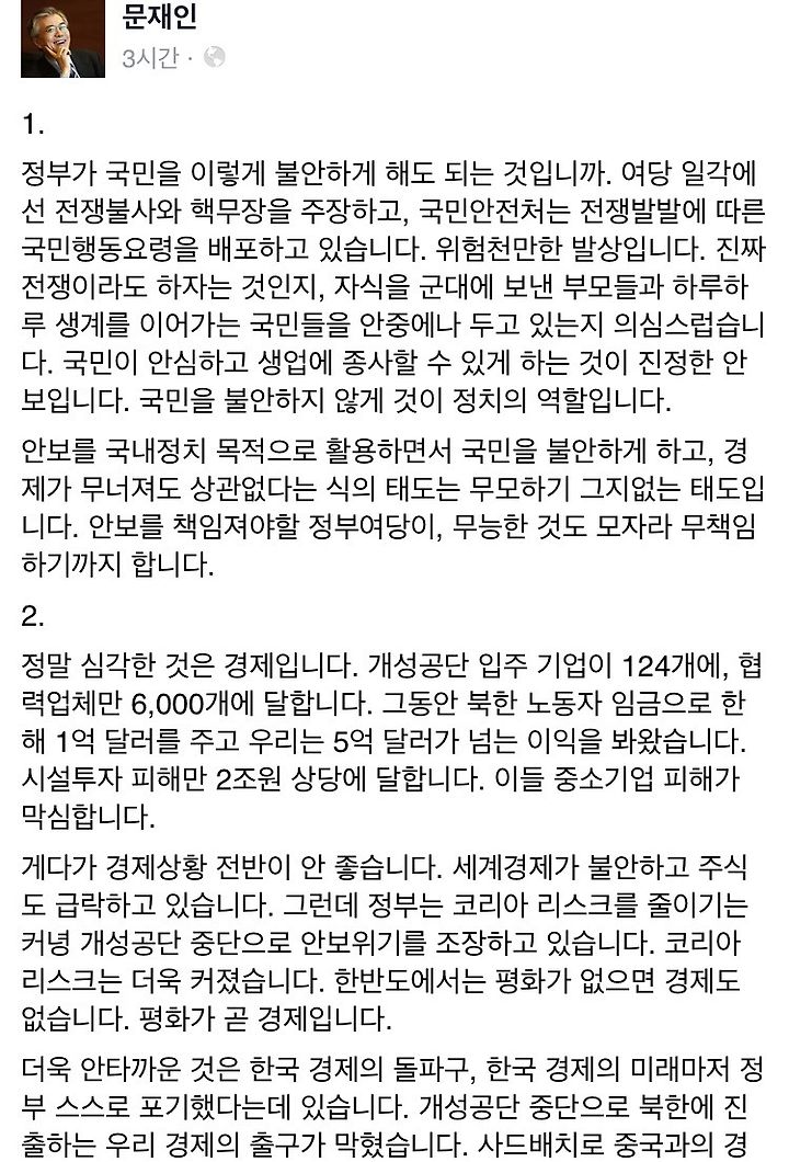 조금전 문재인 의원님 페북