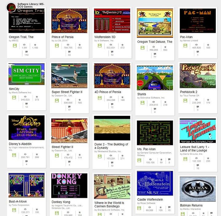 미국 캘리포니아 샌프란시스코에 사무실을 두고 온라인 디지털 도서관을 운영하는 비영리단체 인터넷아카이브(Internet Archive) 덕분이다. 15일 현재 인터넷아카이브는 공식사이트에서 2천628개의 MS-DOS 게임 항목을 등재하고, 웹기반 도스박스 에뮬레이터로 서비스 중이다.