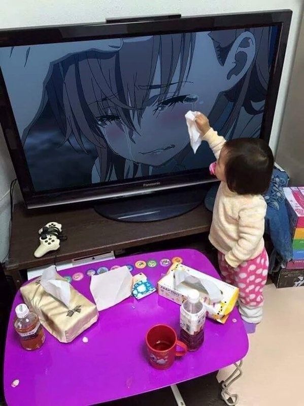 눈물 닦아주는 아기네요.
