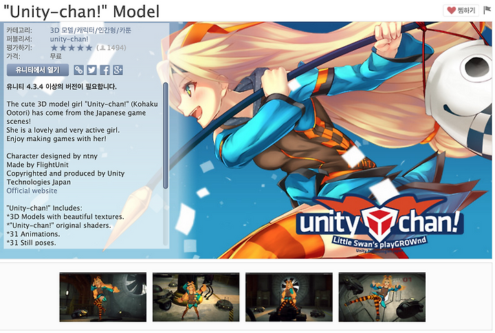 유니티짱은 라이센스가 프리이며 야한거나 이미지를 손상시킬만한 것에만 사용하지 않으면 됩니다. ^^