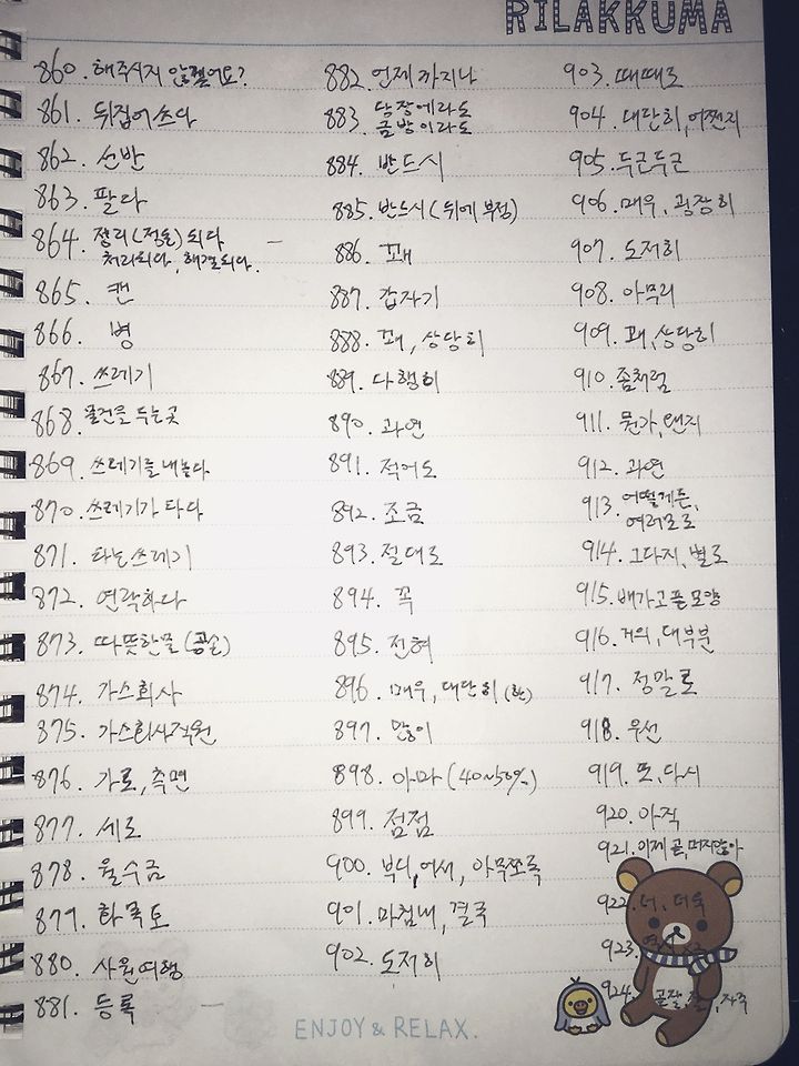 (저는 한번 외웠는데 다시 봤을깨 100%정확하지 않으면 -를 쳐서 다시 봅니다 ^^)