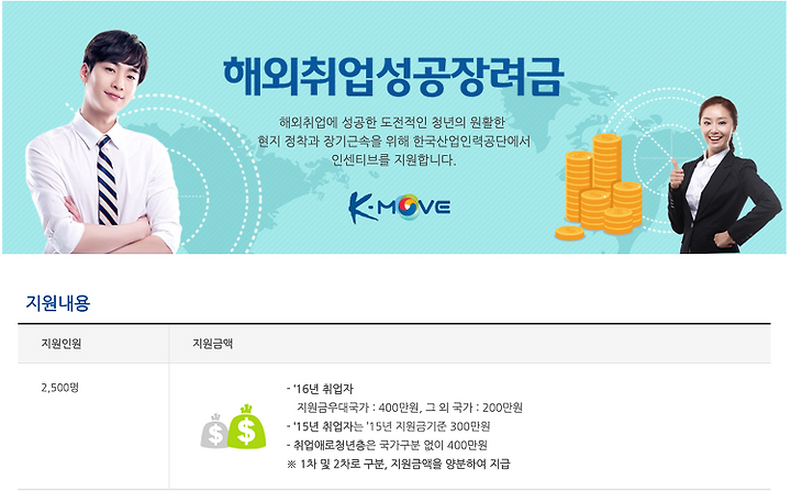 - 지원금우대국가 : 400만원, 그 외 국가 : 200만원