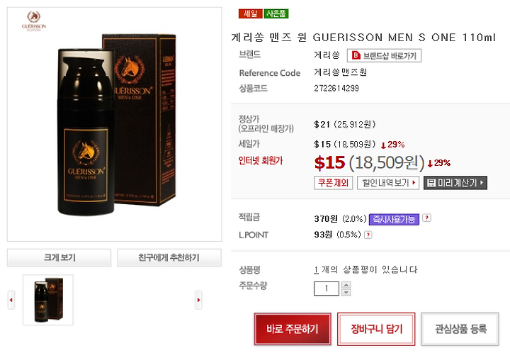 신랑 로션이 떨어져가고 있었는데 마침 롯데인터넷면세점에서 하루 할인 행사에 떴길래 하나 구입했습니다~