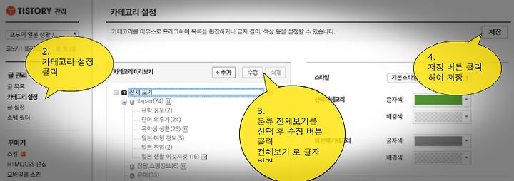 네이버의 전체 보기 글자 와 같이 카테고리를 변경할 수 있습니다.