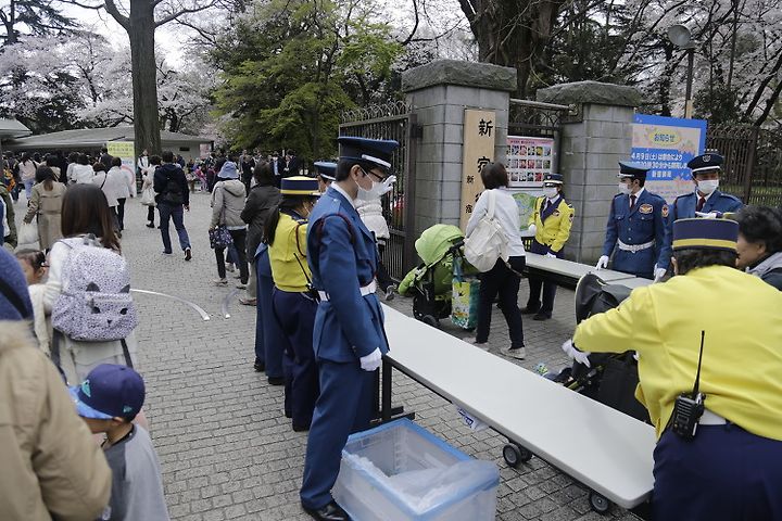 오전 11시 정도의 신주쿠교엔 입구 상황입니다ㅋㅋ 사람도 무지 많기도 하고 들어가는 입구에 직원들이 술을 가지고 들어가지는 않는지
