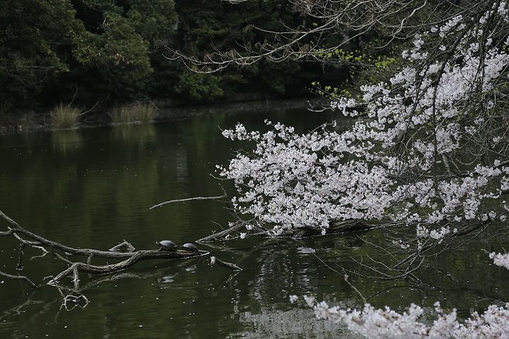 벚꽃 옆에 일광욕 하고 있는 거북이들도 보이네요ㅎㅎ
